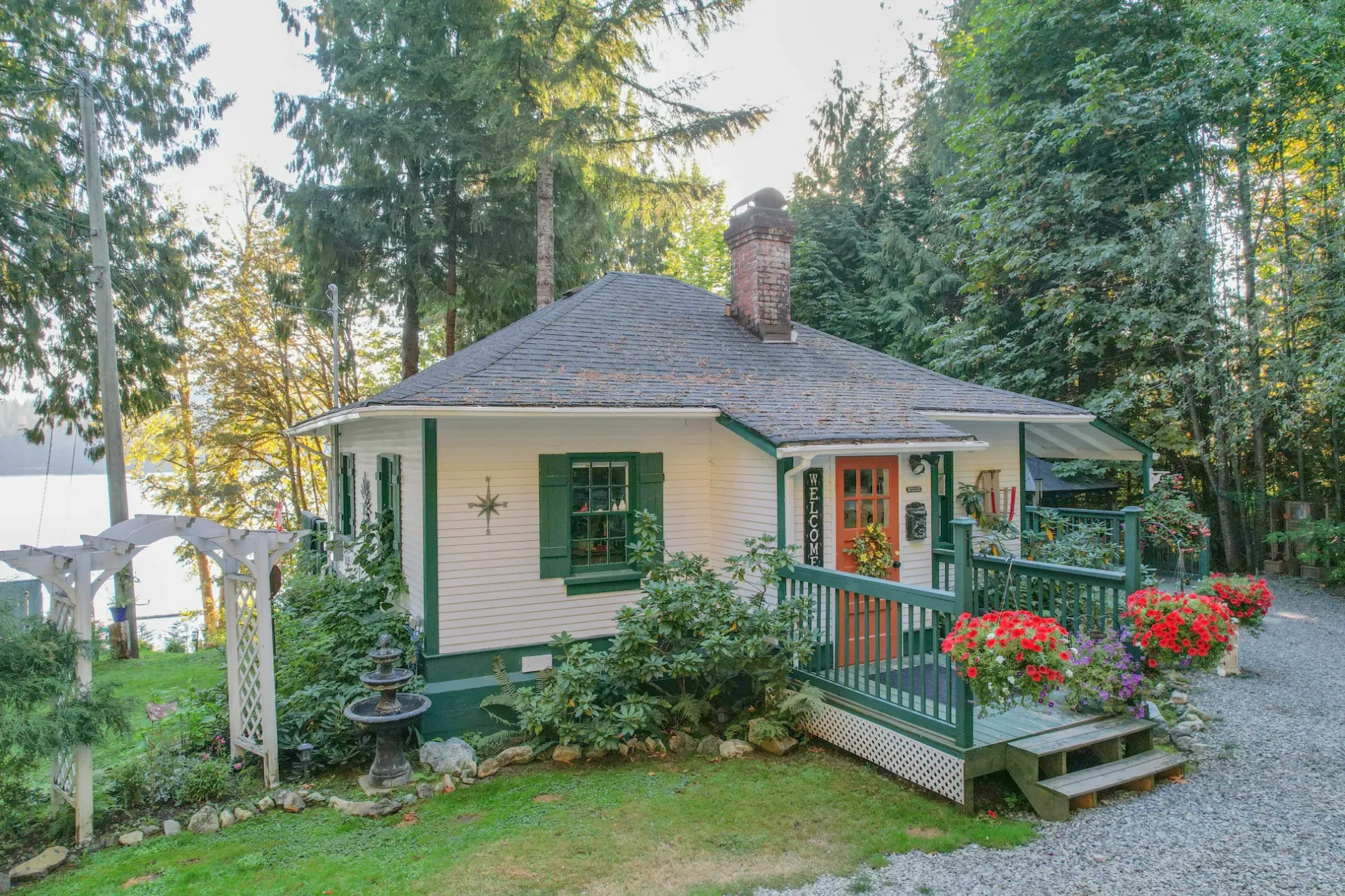 Beautiful and Peaceful. Your enjoyment of the Upper 1 bedroom Cottage as part of a 1 acre of this beautiful lakefront property. Nestled in the Youbou forest this cottage is tranquil and cozy at its best, from looking through the forested trees sitting by your outdoor firepit listening to the rumbling of a brook while relaxing in a outdoor tub or grilling on the large deck with spectacular lake views ,this is a destination of relaxation is for everyone! This property is of pure wildness bliss. We have a second cottage (lower beach cottage)also on the property which is on the beach front, the shared beach and wharf are also there for everyone’s enjoyment!